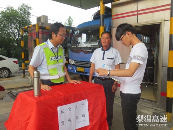 鷹潭西收費站:開展一系列活動營造濃厚氛圍。一是組織人員全方位開展培訓教育,開展形式多樣的活動,組織員工進行全省安全知識考試微信答題。二是聯(lián)合交警部門在鷹潭西收費車道設立綜治安全生產(chǎn)咨詢擺臺,向廣大司乘朋友發(fā)放安全出行知識和安全警示安全的咨詢服務,切實提高一線員工和社會公眾的安全意識。三是組織員工進行安全防火應急預案演練活動,讓全體員工了解如何使用應急設備。四是廣泛利用LED屏、微博、宣傳欄、安全標語等大力宣傳安全生產(chǎn)相關知識。