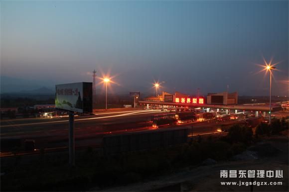 在去贛浙之前,我已經聽說過很多關于她的故事,比如她與浙江相通,連接的是玉山縣的梨園,是離家最遠的收費站,也是全省最大的省界站,雙向24車道 ,常稱她為“梨園”。我懷著忐忑不安的心情,坐了很遠很久的車,黃昏時終于到達了梨園。映入眼簾是“為江西中部崛起而努力奮斗”的宣傳拱門以及寬闊壯觀的24個車道的收費廣場。