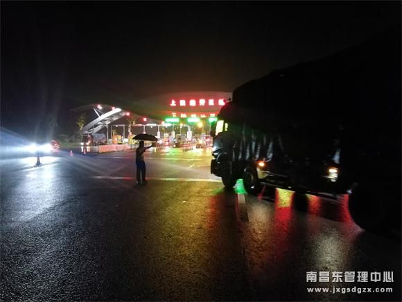 收費廣場已經(jīng)忙開了,夜里行駛的車輛以貨車為主,收費站的通道已全部開啟,每個車道都有車輛在通行,龍門架上的LED屏幕播放著各種提示信息,站長正帶所有值守的同事們在廣場各個位置指揮引導(dǎo)車輛,他們有的穿著雨衣,有的撐著傘,不過在暴雨下我已沒法分辨出是誰了。我在各個車道之間穿梭,幫同事們分配傳遞通行卡、票據(jù),一遍遍向司乘解釋分流的原因。不一會兒,在廣場的車輛已經(jīng)在各個車道有序排隊通行。