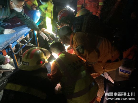 1月4日晚上20點30分,在滬昆高速梨溫路段K494南昌方向,發生一起大型貨車追尾大巴車事故,導致貨車駕駛室變形、大巴車發動機損壞,駕駛員被卡駕駛室、大巴車54人滯留高速,路面車流量巨大,隨時存在二次事故隱患。省交投集團南昌南車輛救援大隊玉山中隊快速出擊,成功將駕駛員解除出來,并護送50余人平安下高速。