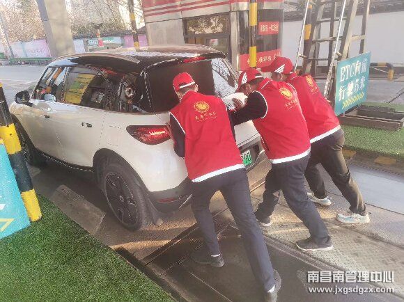 1月1日,新年第一天,在南昌南管理中心東鄉收費站收費廣場,“紅馬甲”工作人員熱心幫助拋錨的司乘推車化解困難,不僅給節日添上喜慶色彩,也溫暖了過往司乘人員。