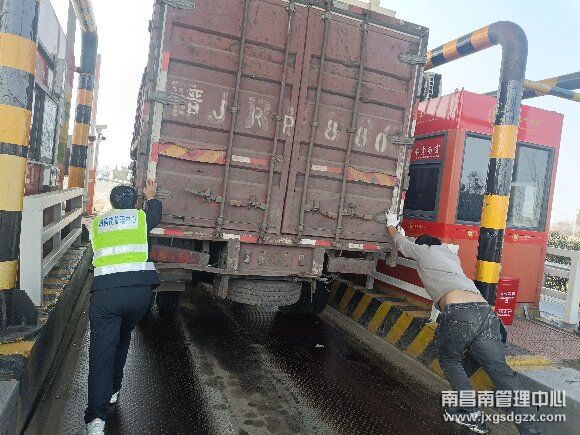 近日,一輛小型貨車因故障拋錨被困于南昌南管理中心豐城東收費(fèi)站收費(fèi)車道內(nèi),工作人員熱心幫助解困。