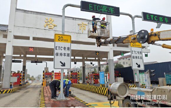 2月2日,洛市收費(fèi)站出口ETC專用車道天線突發(fā)故障,此時(shí)已經(jīng)溫度驟降、下起小雨,接到報(bào)修電話后,洛市維護(hù)站緊急研判當(dāng)前形勢(shì),考慮到未來(lái)一周都是雨雪冰凍天氣,且車流量日漸增加,后期施工難度將更大,制定好詳細(xì)施工方案,確保雨天施工人員和設(shè)備安全后,該站工作人員緊急調(diào)度登高車進(jìn)行更換天線和穿線作業(yè)。