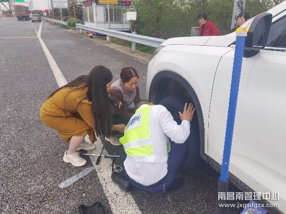 “能幫幫我們嗎?我們的車(chē)子爆胎了,現(xiàn)在不知道怎么辦。”4月17日,南昌南收費(fèi)站入口廣場(chǎng)一輛白色SUV因?yàn)楸ネT诹藦V場(chǎng)中央,隨即當(dāng)班工作人員也接到了車(chē)上司機(jī)的求助。