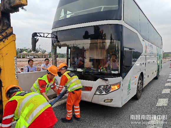 5月4日16時15分,滬昆高速梨溫段K545上海方向一輛大巴發生故障無法正常行駛,車上載有47名旅客,急需幫助。南昌南車輛救援大隊楊梅嶺中隊接到報警電話后立即組織人員以及轉運車輛趕赴現場救援。