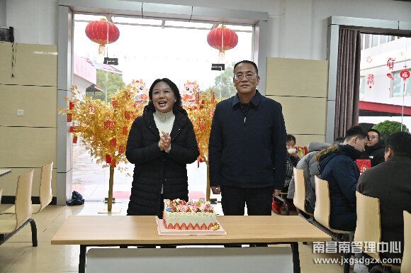 2月4日,小年后上班第一天,南昌南管理中心機關舉辦春節前聚餐活動。中心黨委書記陳蘇華、總經理萬良紅為大家切開象征祝福的蛋糕,中心領導班子向中心全體員工致以新春祝福。