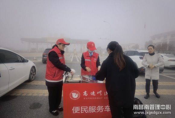 1月17日,受大霧天氣影響,南昌南管理中心樂安北收費站實行大霧天氣臨時交通管制,該站立即組織青年志愿者們積極行動,為滯留乘客送上暖心服務。