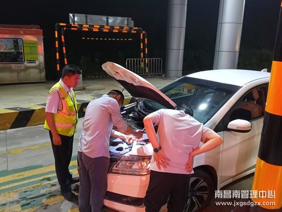 據悉,當天21時左右,一輛白色小轎車在準備駛離進賢收費站時突然熄火,司機焦急地嘗試了幾次都無法啟動,當班班長得知這一情況后迅速上前查看,并與一名班員協助司機快速將車輛推至收費外廣場安全區域,隨后幫助司機與就近的維修廠取得聯系,等待維修。