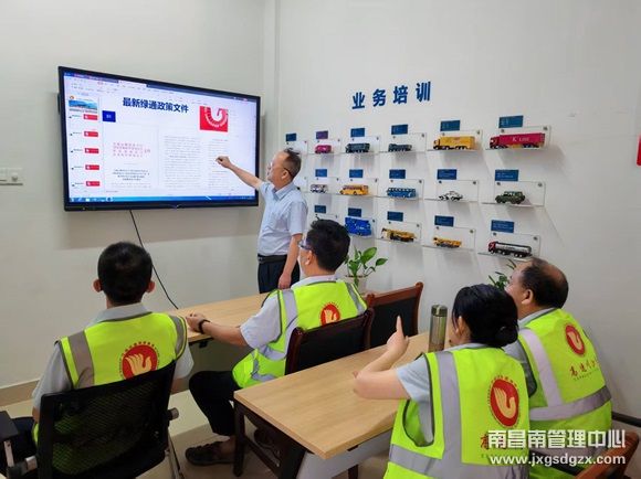 為進一步提升綠通車輛查驗服務水平,近日,南昌南管理中心岡上收費站組織全體員工開展綠通車輛減免專項業務培訓,全力保障惠民政策精準實施,營造高效有序的通行環境。